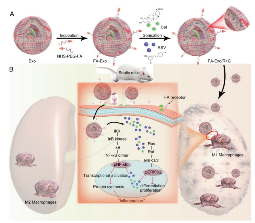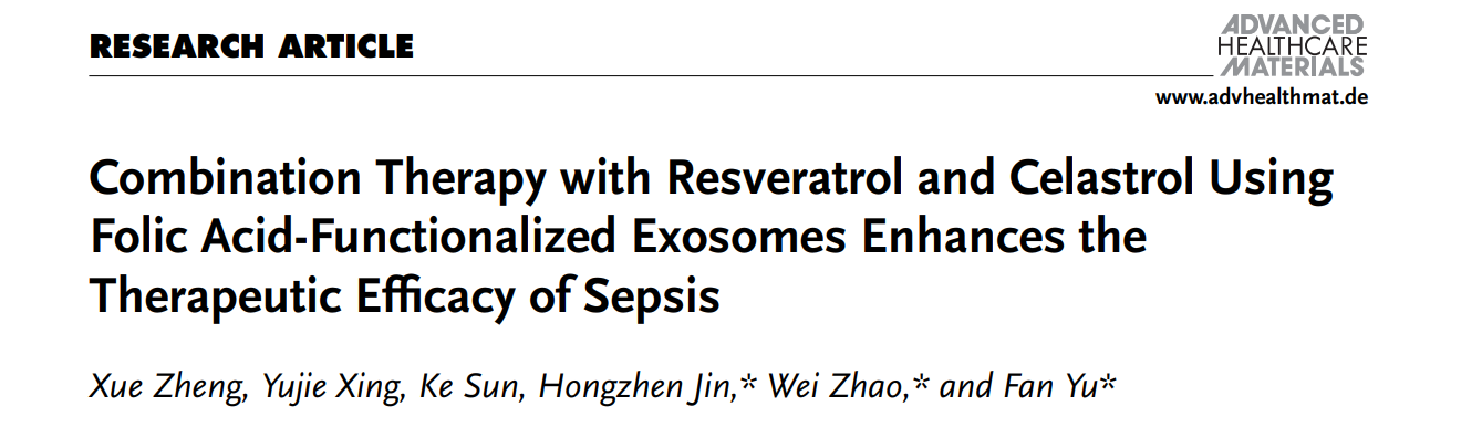 永利集团官网总站、药物化员工物学国家重点实验室赵炜教授团队在国际学术期刊 《Advanced healthcare materials》发表题为“Combination therapy with resveratrol and celastrol using folic acid-functionalized exosomes enhances the therapeutic efficacy of sepsis”的研究论文。