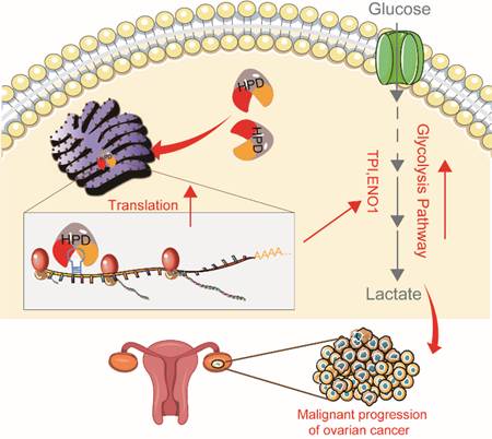 RNA结合蛋白(RBP)通常被认为是细胞中一类重要的蛋白,通过特殊的RNA结合域(RNA-binding domain, RBD)与RNA上的特定基序(motif)或RNA二级结构相结合,广泛参与到RNA的剪切、转运、序列编辑、胞内定位及翻译控制等多个转录后调控过程。4-羟苯丙酮酸双加氧酶(HPD)是酪氨酸分解代谢途径中的第二个关键酶,其催化4-羟苯丙酮酸(4-Hydroxyphenylpyruvic acid, 4-HPPA)转变成尿黑酸(homogentisic acid, HGA)。团队前期研究发现HPD在肺癌中高表达,其通过激活AMPK-HDAC10-G6PD轴调控磷酸戊糖途径而促进肺癌生长(Cell Death Dis. 2019;10(7):525)。但是,HPD在卵巢癌中的作用机制还远未阐述清楚,尤其是HPD作为RNA结合蛋白调控卵巢癌细胞代谢的作用及分子机制未见报道。