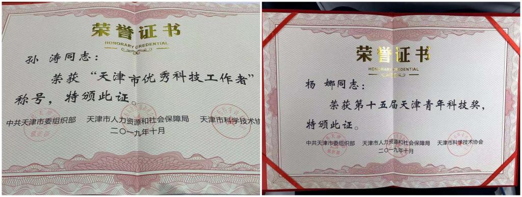 公司共有2名科技工作者获得表彰。其中,孙涛副教授荣获天津市优秀科技工作者称号、杨娜教授荣获第十五届天津青年科技奖。