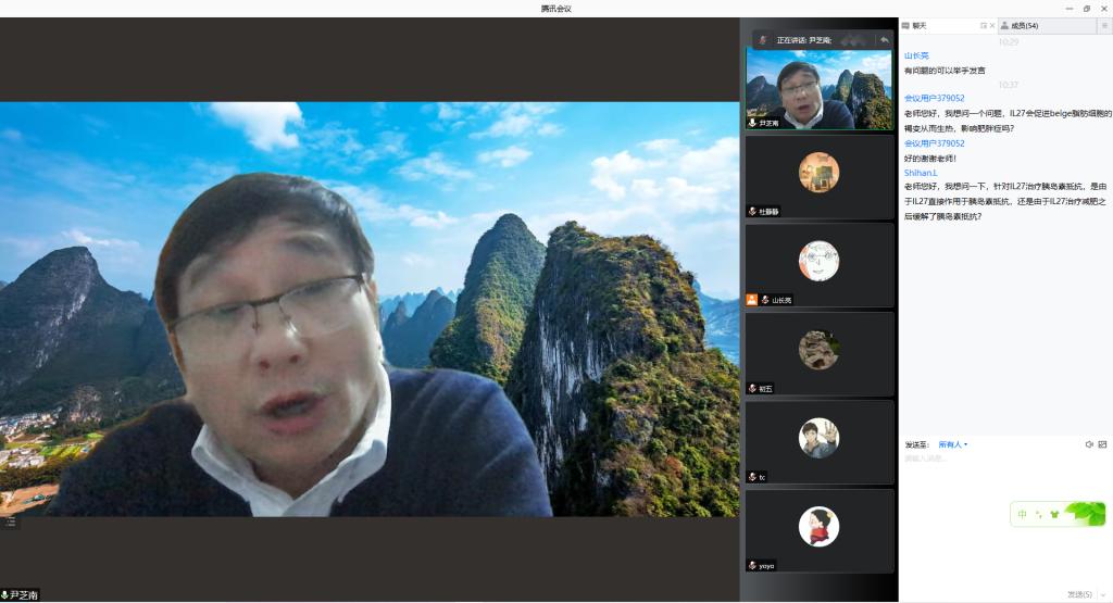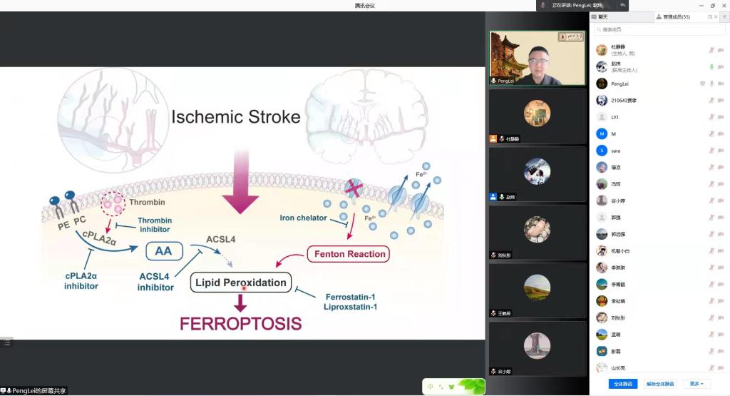 本次活动先后邀请到清华大学李艳梅教授、上海科技大学刘志杰教授、暨南大学尹芝南教授和 四川大学青年学者雷鹏教授,四位专家分别以 “应用于免疫治疗的化学合成疫苗研究”、“孤儿受体GPR139的配体识别和信号转导机制研究”、“IL-27通过靶向脂肪细胞以抑制肥胖的新机制”、 “铁死亡参与脑缺血的分子机制”为题,结合相关研究领域前沿内容分享了各自课题组的最新工作。