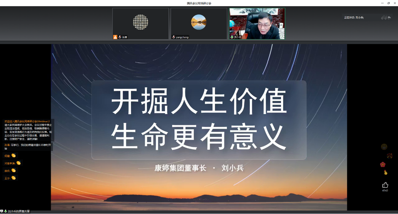 本次报告是永利集团官网总站“科研转化与创新创业”课程的一次特邀报告,以线上方式进行,总观看人数超过170人,点赞数超过2.5万。同学们纷纷表示,刘董事长和康婷集团的创业经历对自己的人生发展很有借鉴意义,自己对创业也有了更深的认识。未来将以刘董事长等优秀企业家为榜样,坚定理想的同时脚踏实地,努力开创精彩的人生。