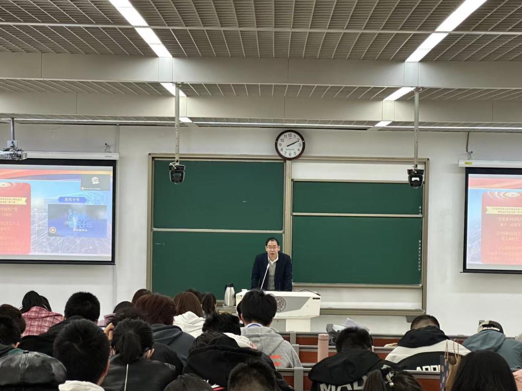 接着,牛文利为同学们讲述了中国共产党引领中华民族伟大复兴的宏伟蓝图。他特别介绍了天津市的“十项行动”。这些行动涵盖了促进城市经济高质量发展、建设自由贸易港、生态环境保护和保障民生等领域,是天津市全面深化改革、扩大对外开放、构建高水平现代化经济体系的重要举措。通过这“十项行动”,天津市各方面的改革发展任务已经进入了新的阶段,必将为现代化建设注入强大的经济动力。他表示,在中国共产党的领导下中华民族必将实现伟大复兴的梦想,同学们要深入学习贯彻党的二十大精神,矢志科研、不负使命,青春向党、不负人民,在全面建设社会主义现代化强国的道路上争做时代青年先锋。
