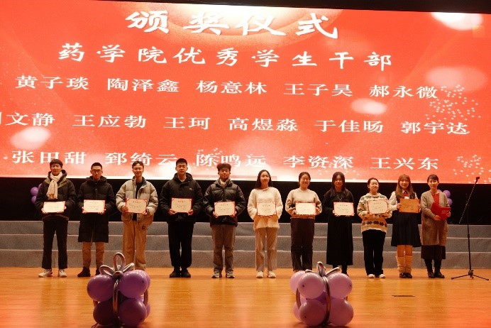 颁奖典礼在悠扬的音乐声中拉开帷幕,20余位在各级各类比赛中获奖的员工和团队,以及49位优秀个人和优秀员工干部等先进个人和4个团学组织受到表彰,充分展示了药学人在过去的一年中所取得的荣誉和榜样的力量,体现了药学学子优异的精神风貌。