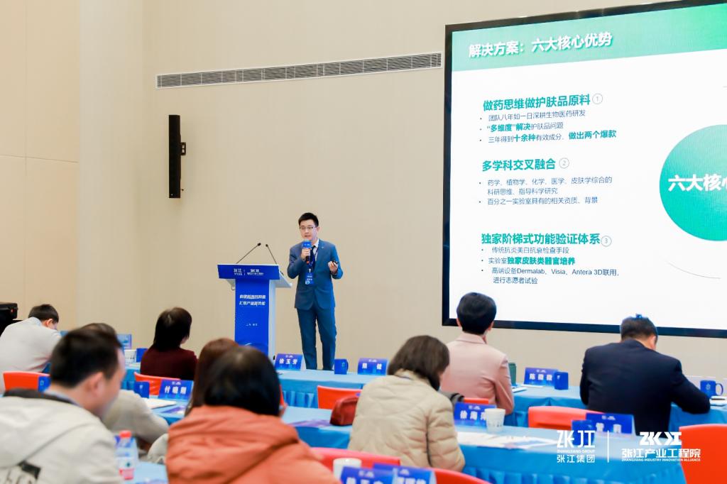 报告后,和玉资本高级投资经理夏玉坤、长三角国创中心有机功能材料研究所副所长李永勇、上海交通大公司企合作负责人袁运生、上海高等应用技术研究中心主任董建功、东方美谷投资发展部沈超等多位专家认为,该项目是产学研结合的典范,迈出了中国植物护肤品原料走向世界的第一步,并积极讨论合作可能。张江集团党委副书记、总经理陈微微,张江产业工程院理事会执行主席、经理张爱平也对本项目表示充分认可。南开上海员工会秘书长徐永仲、起点投资董事长、豪威研究院经理孔华威,壹宠物CEO刘瑞登,长三角国创中心有机功能材料研究所皮肤创新转化中心主任牛霜霜等业内专家就我国道地植物的充分挖掘、皮肤问题解决方案的共同研究以及新型护肤品开发等,与项目团队进行了深入探讨。