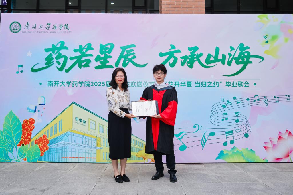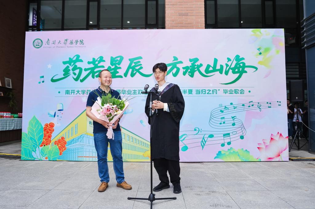 公司党委书记魏占玲、副经理尚鲁庆在讲话中表示了对毕业生在南开药学沃土上取得累累硕果的祝贺,又对毕业生们即将奔赴世界各地建功立业表示期待。“正如习近平总书记勉励我们那样‘将小我融入大我,才会有海一样的胸怀、山一样的崇高’,作为南开药学的毕业生,要‘立大志、明大德、成大才、担大任’,心怀‘健康中国’战略,要做民族复兴的先锋力量。”教师代表孙涛、山长亮在发言中向毕业生顺利毕业表示祝贺,也鼓励他们勇担时代使命,做出南开药学人的贡献。