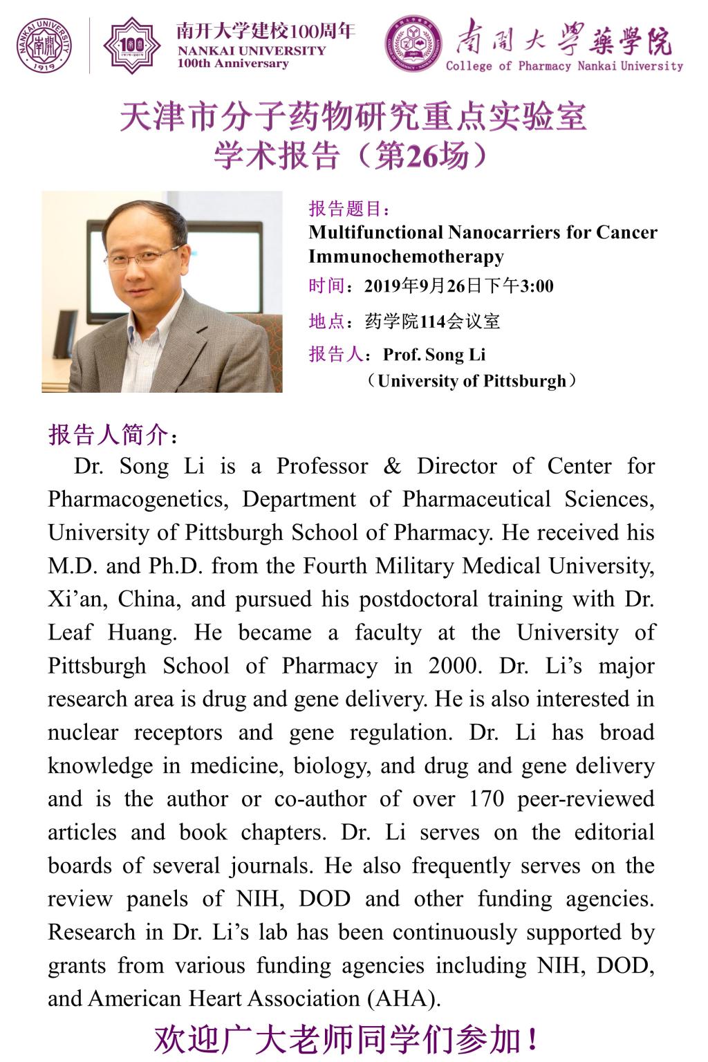 Prof. Song Li 学术报告2019/09/24
