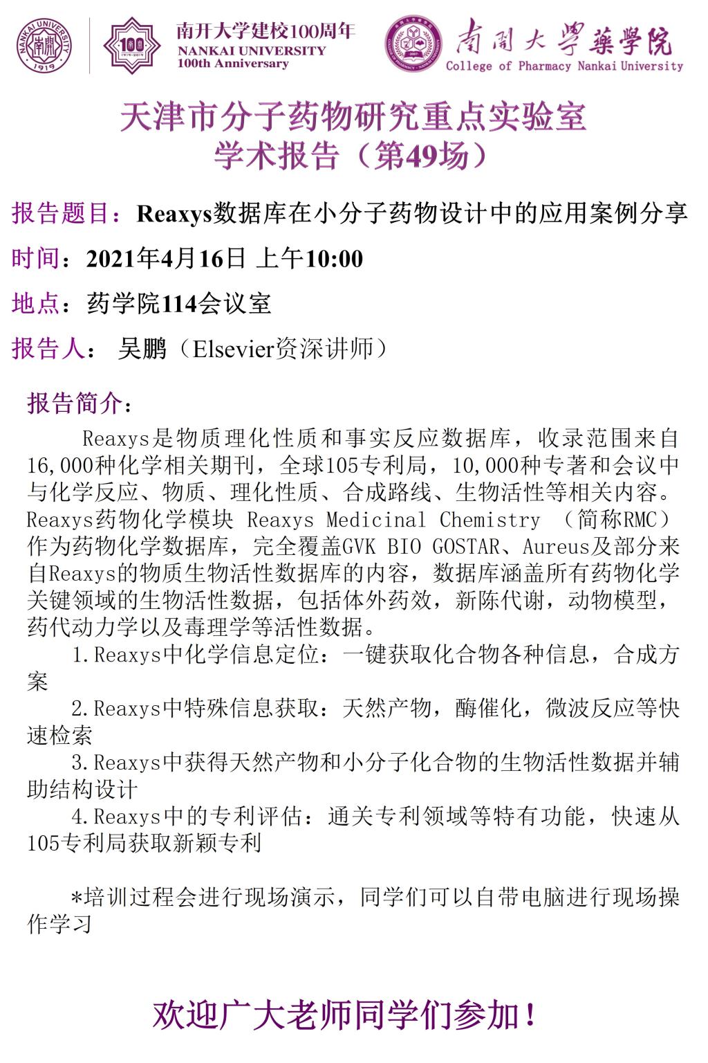 Reaxys数据库在小分子药物设计中的应用案例分享2021/04/12
