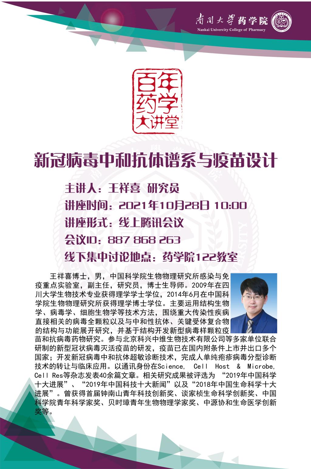 百年药学大讲堂——王祥喜研究员2021/10/20