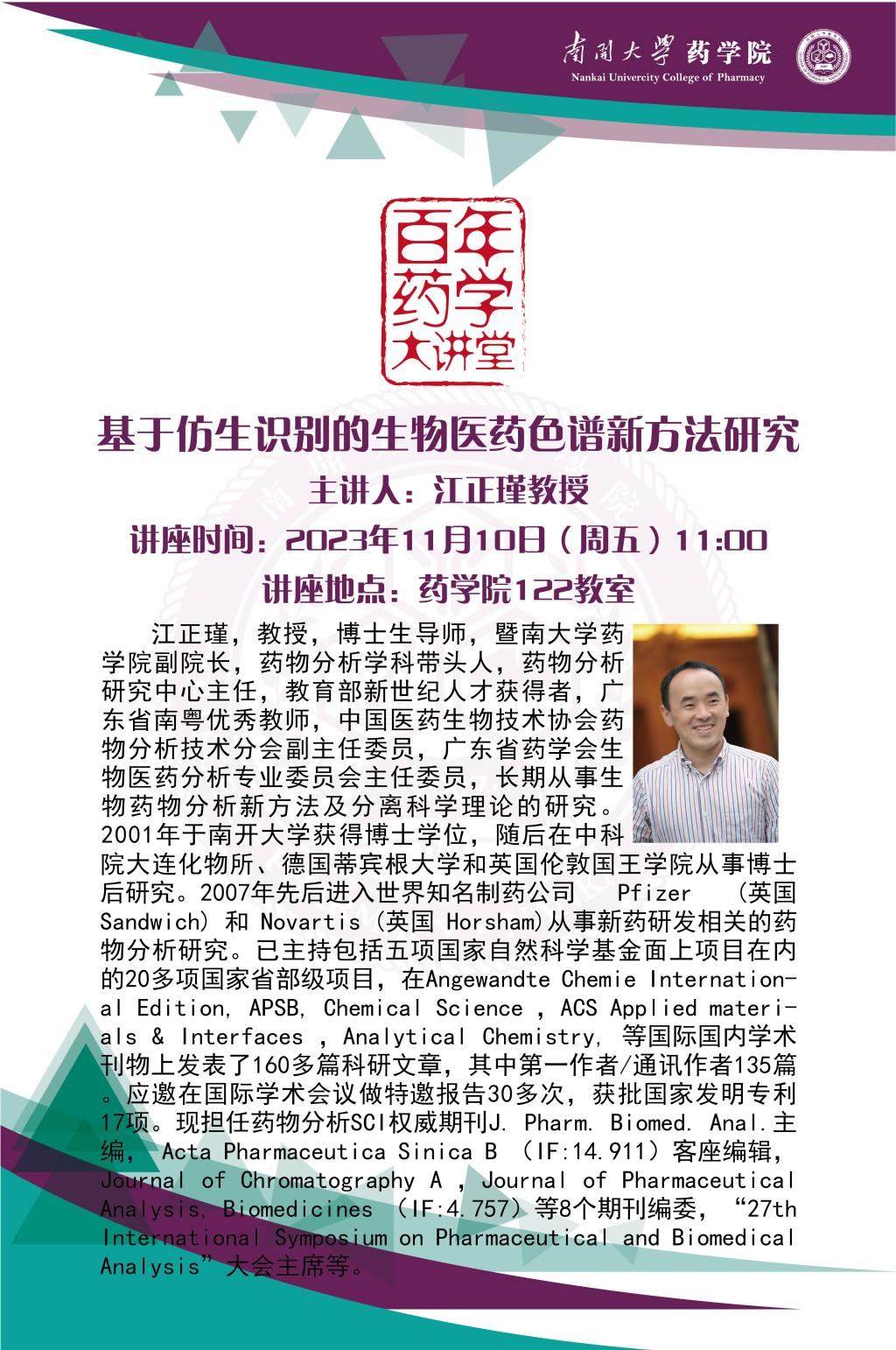 百年药学大讲堂—江正瑾教授学术报告2023/11/08