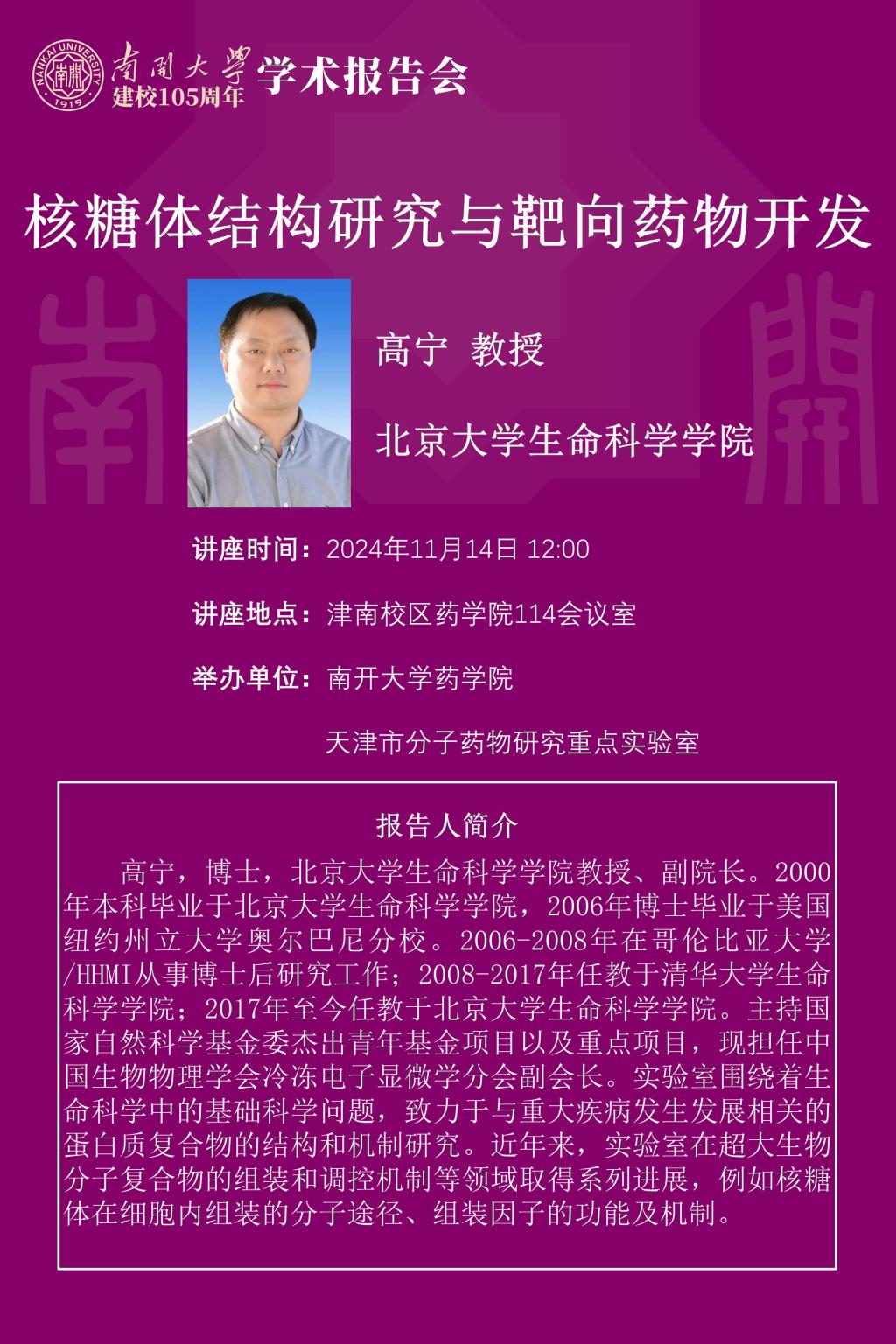 永利集团官网建校105周年学术报告会——高宁教授2024/11/04