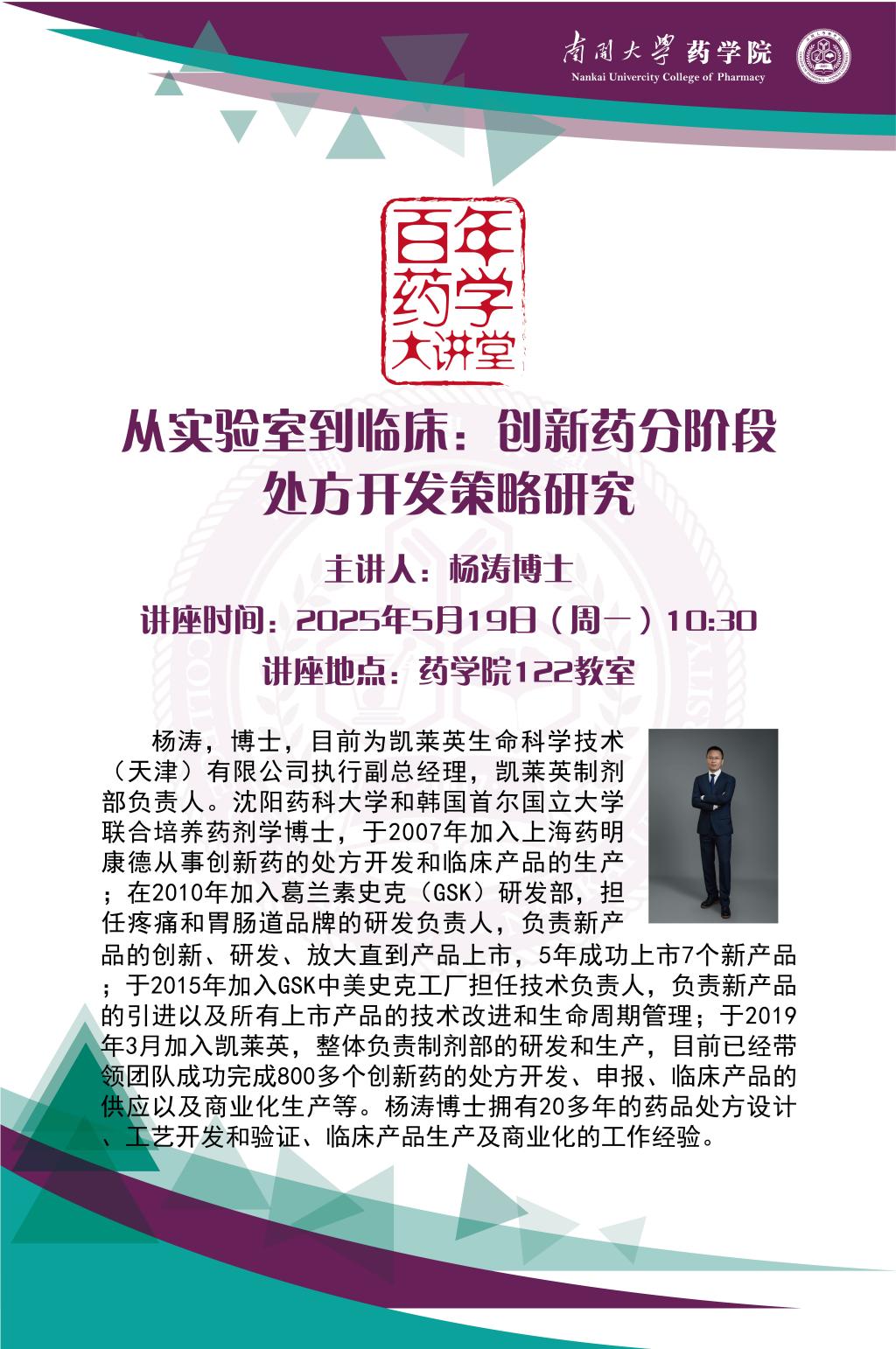 百年药学大讲堂——杨涛博士学术报告2025/05/14