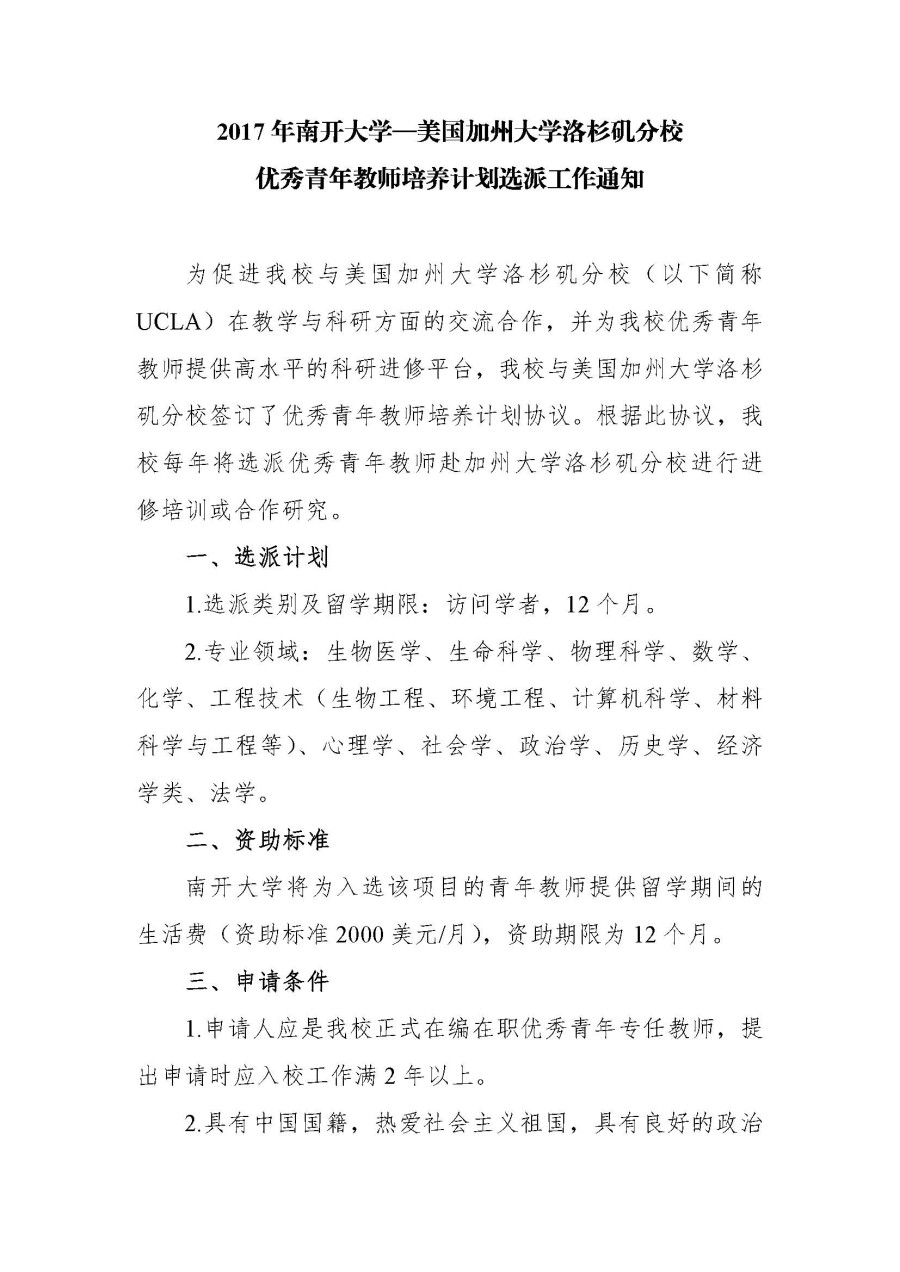 2017年永利集团官网-美国加州大学洛杉矶分校优秀青年教师培养计划选派工作通知2016/11/10
