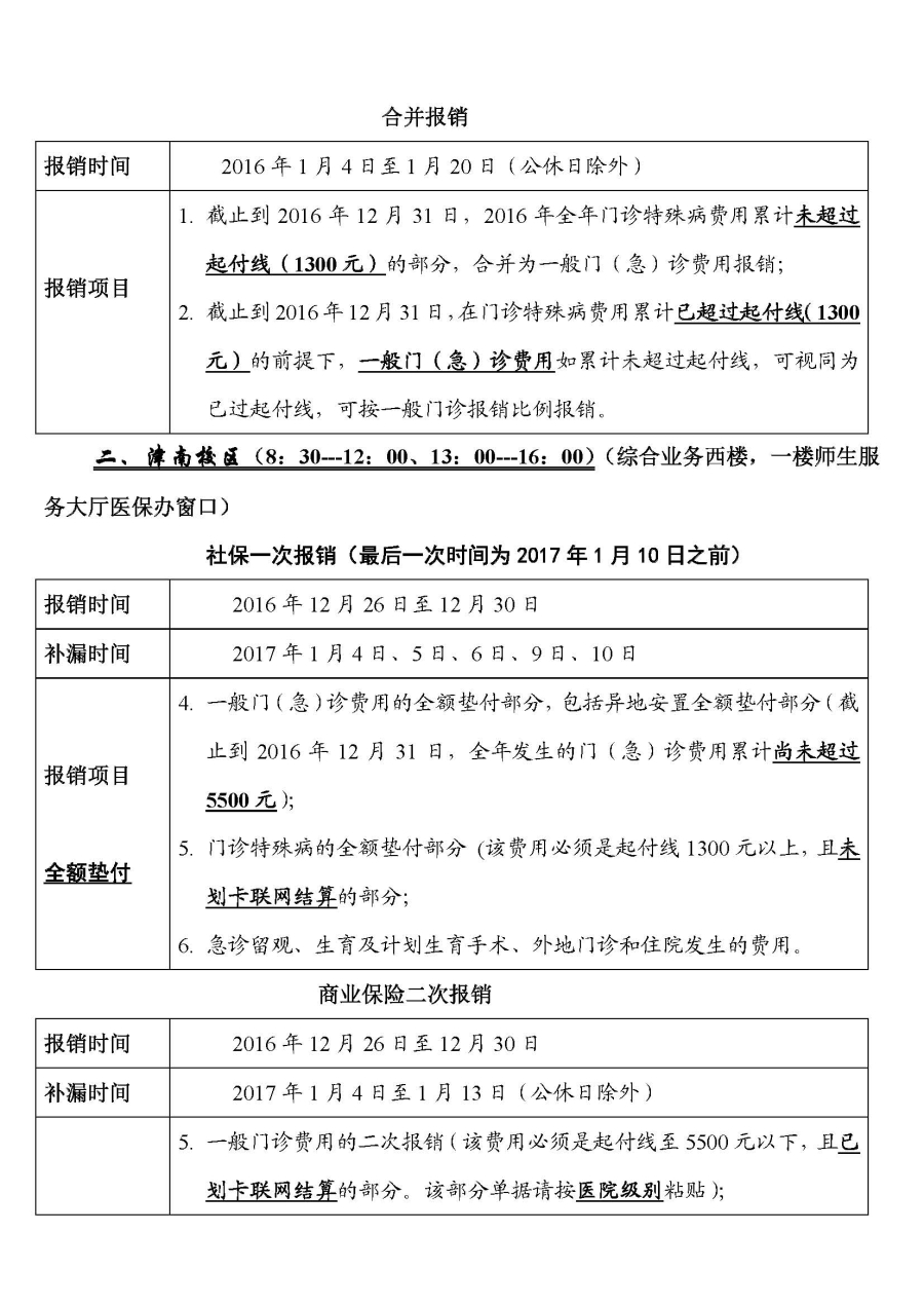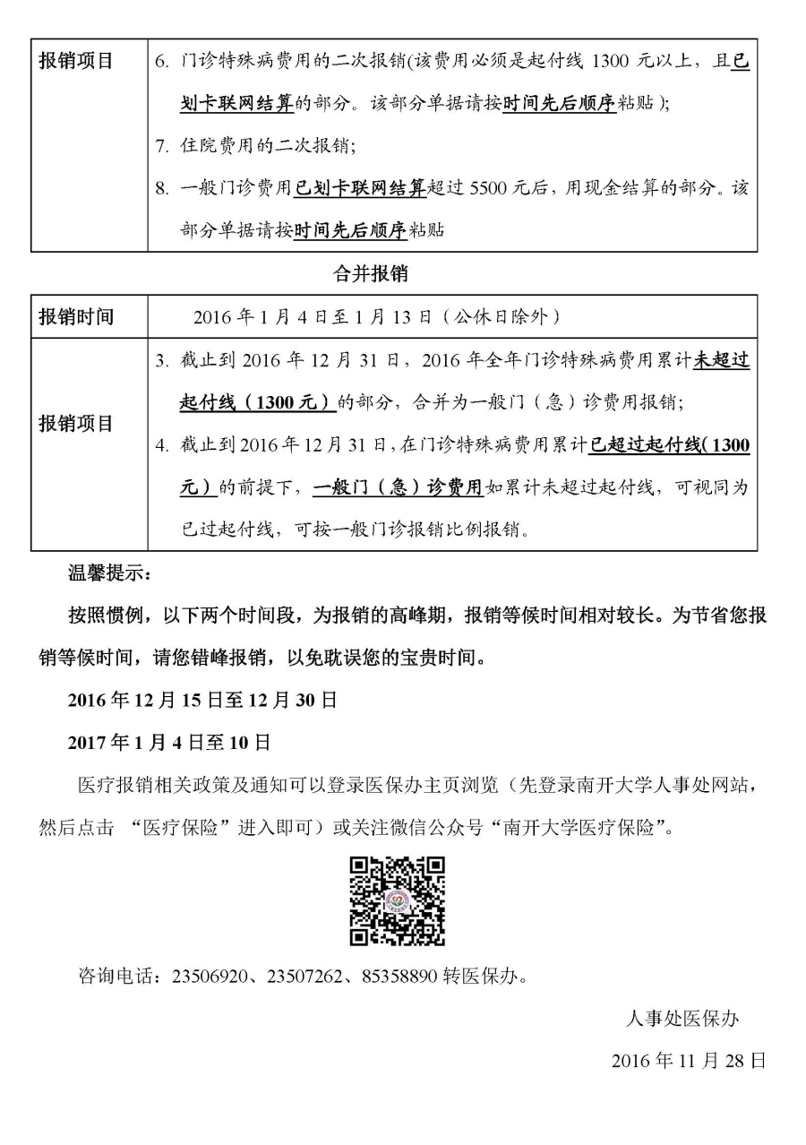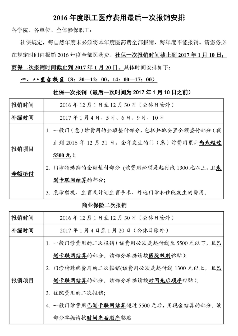 2016年度职工医疗费用最后一次报销安排